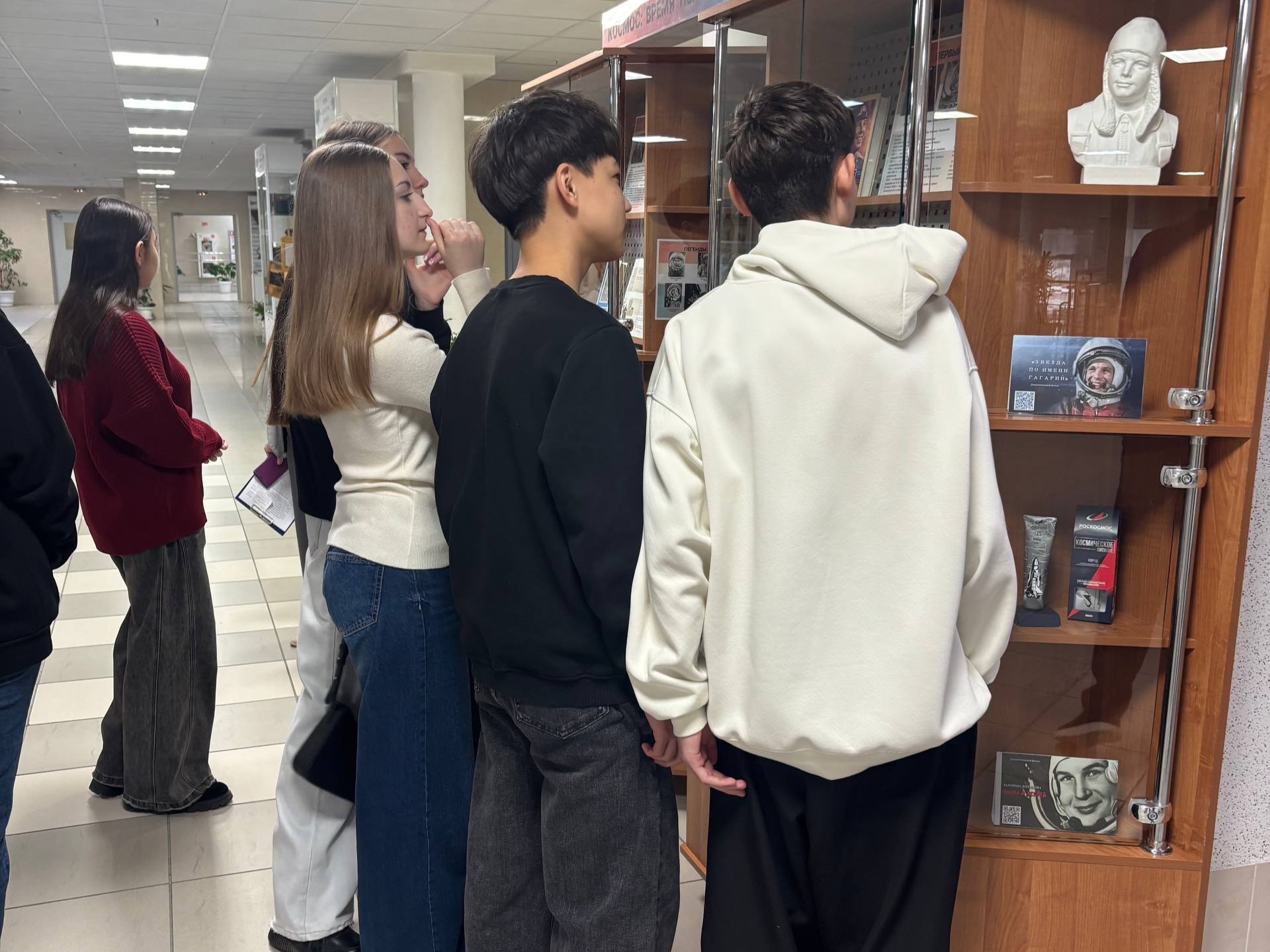 The first guests at the exhibition were schoolchildren from the Surgut Technological School and students from India studying at Surgut State University. They explored the publications with genuine interest and actively shared their knowledge about modern rockets and satellites.